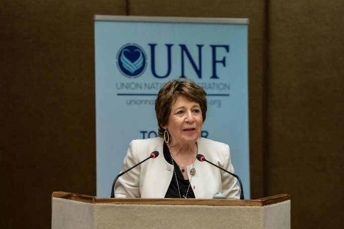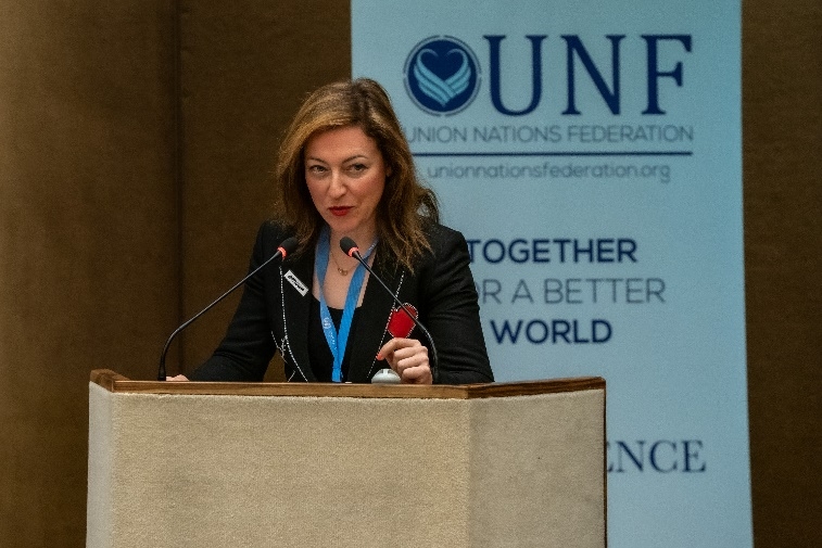 The conference began with a solemn opening sequence. Christophe Giovannetti, Secretary General of the Association of Friends of the Declaration and President of the Union Nations Federation (UNF) opened the conference with a welcome address. Corinne Lepage, President of the Association of Friends of the Declaration and initiator of the Declaration, then took the floor to deliver a powerful and visionary speech, underlining the growing importance of this text.